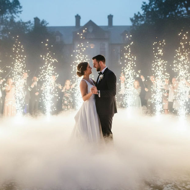 Enhance those once-in-a-lifetime moments with our low fog effect, adding a soft, cloud-like layer for your first dance, giving you that magical “dancing on the clouds” feel while captivating your guests. To top it all off, our sparkulars deliver a breathtaking display of indoor sparks, adding excitement and a dramatic wow-factor to entrances, speeches, and special highlights throughout your celebration.